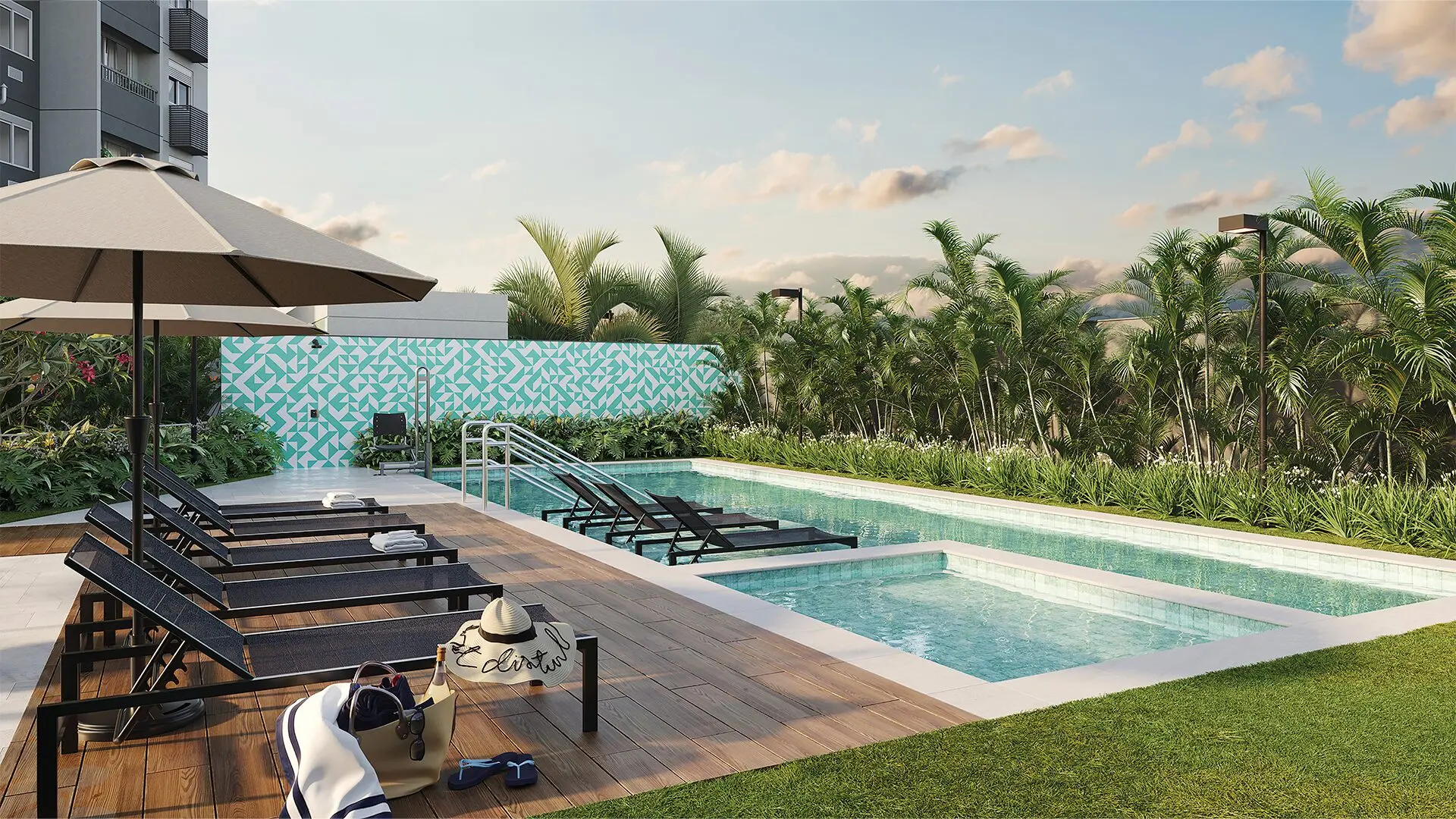 Tipo Meio Torre B – 44 m² | 2 Dorms. (1 Suíte)